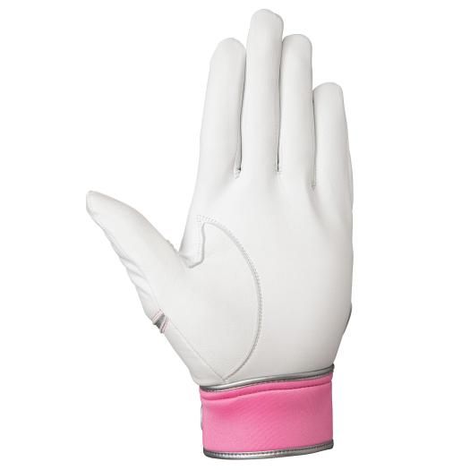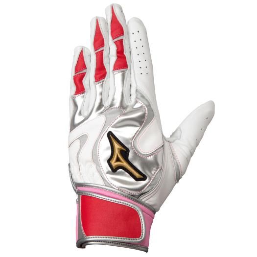 ミズノ(MIZUNO) ミズノプロ打者用手袋(両手用) モーションアークMF 菊池モデル 品番:1EJEA08503 カラー:03:ホワイト×シルバー×ピンク サイズ:22~27cm 素材 掌部:羊革 甲部:合成皮革、羊革、ナイロン、ポリエステル、ポリウレタン 手袋のサイズは、手囲いの長さが目安となります。 手囲いとは、親指の第一関節とほぼ同位置にある生命線の始点と、小指の付け根と手首を結んだ線の、手首から3分の1の距離を結んだ手の平の周りの長さです。 原産国:インドネシア製