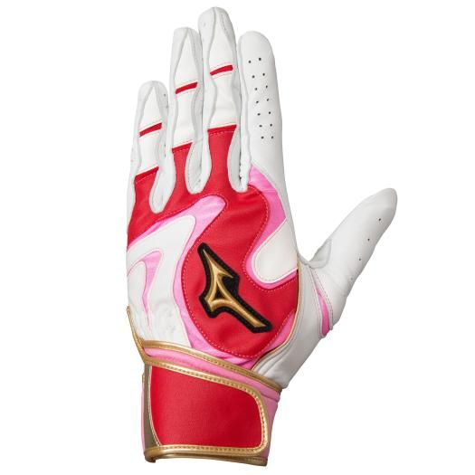 ミズノ(MIZUNO) ミズノプロ打者用手袋(両手用) モーションアークMF 菊池モデル 品番:1EJEA08562 カラー:62:ホワイト×レッド×ピンク サイズ:22~27cm 素材 掌部:羊革 甲部:合成皮革、羊革、ナイロン、ポリエステル、ポリウレタン 手袋のサイズは、手囲いの長さが目安となります。 手囲いとは、親指の第一関節とほぼ同位置にある生命線の始点と、小指の付け根と手首を結んだ線の、手首から3分の1の距離を結んだ手の平の周りの長さです。 原産国:インドネシア製