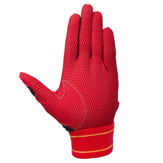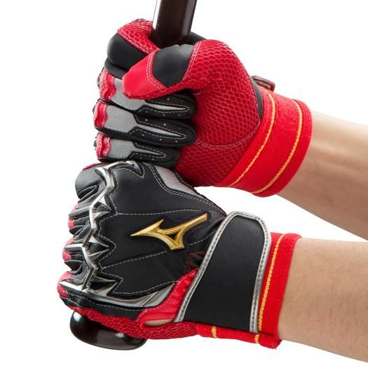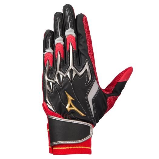 ミズノ(MIZUNO) ミズノプロ打者用手袋(両手用) シリコンパワーアークLI 品番:1EJEA200 カラー:09:ブラック×レッド×グレー サイズ:22~27cm 素材 掌部:羊革<型押し> 甲部:合成皮革、ポリエステル、ナイロン、ポリウレタン 機能・特徴 パワーアークライン 特許:3919433 デュアルテンションベルト 指先独自縫製 ダイヤエンボスシープレザー 手袋のサイズは、手囲いの長さが目安となります。 手囲いとは、親指の第一関節とほぼ同位置にある生命線の始点と、小指の付け根と手首を結んだ線の、手首から3分の1の距離を結んだ手の平の周りの長さです。 原産国:ベトナム製、フィリピン製