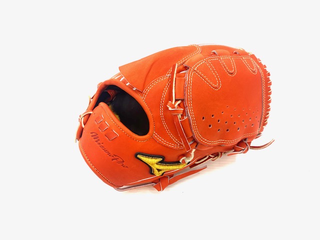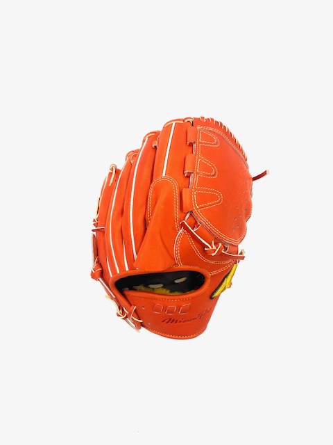 品番:1AJGH23901 カラー:52(スプレンディッドオレンジ) 素材:ギンジョウキップレザー(天然皮革:牛革) サイズ:11 ポジション:投手用 ウェブ下ポケット 親小指ストレートハミダシ⇒ベロの横伸びを防ぐ為に親小指側ともに押えてタテ伸びへ誘導 左右:右投用 付属品:専用グラブ袋付き