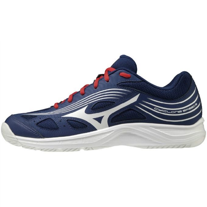 ミズノ(MIZUNO) レディース バレーシューズ サイクロンスピード3 品番:V1GA218064 カラー:ブルー×ホワイト(64) サイズ:22.5~29.0cm 重量:約275g(27.0cm片方) 素材 甲材:合成繊維、人工皮革 底材:合成底 インソール:取り外し可 足幅:2E相当の方向け 特徴:軽量インジェクションミッドソール 原産国:ベトナム