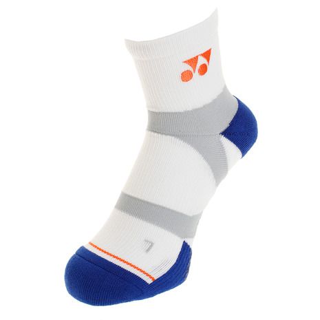 ヨネックス YONEX メンズ ハーフソックス 品番:19150 カラー:オレンジ(005) サイズ:Mサイズ(24~26cm) 、Lサイズ(26~28cm) 素材:アクリル、綿、ポリエステル、ナイロン、ポリウレタン 機能・特徴 8WRAP:8ラップサポート。ブレによるパワーロスを軽減。足首から足の甲にかけて8の字型にサポートを編み込み、足首の安定、アーチ部の持ち上げ、プレー時のパワーロスを軽減する効果を発揮します。 GRIP:六角グリップ。全方向へのグリップ性能。バドミントンプレーで最も負荷のかかる箇所に滑り止めを配置。プレー時のパワーロスを軽減。 3D ERGO:3Dエルゴ設計。緩みを解消し踏ん張り力を発揮。親指の圧迫感を緩和して、親指の踏ん張る力をサポートします。 足底全体を適度な圧力で包み込み、心地よい履き心地です。シューズ内でのソックスのゆるみを解消します。 かかと直角型:かかとを90°にカッティング。足首のゆるみ、かかとのズレを解消します。 抗菌防臭加工:繊維上の菌の増殖や臭いを抑え清潔に保ちます。耐洗濯性に優れ、長期間効果が持続します。