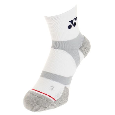 ヨネックス YONEX メンズ ハーフソックス 品番:19150 カラー:ネイビーブルー(019) サイズ:Mサイズ(24~26cm) 、Lサイズ(26~28cm) 素材:アクリル、綿、ポリエステル、ナイロン、ポリウレタン 機能・特徴 8WRAP:8ラップサポート。ブレによるパワーロスを軽減。足首から足の甲にかけて8の字型にサポートを編み込み、足首の安定、アーチ部の持ち上げ、プレー時のパワーロスを軽減する効果を発揮します。 GRIP:六角グリップ。全方向へのグリップ性能。バドミントンプレーで最も負荷のかかる箇所に滑り止めを配置。プレー時のパワーロスを軽減。 3D ERGO:3Dエルゴ設計。緩みを解消し踏ん張り力を発揮。親指の圧迫感を緩和して、親指の踏ん張る力をサポートします。 足底全体を適度な圧力で包み込み、心地よい履き心地です。シューズ内でのソックスのゆるみを解消します。 かかと直角型:かかとを90°にカッティング。足首のゆるみ、かかとのズレを解消します。 抗菌防臭加工:繊維上の菌の増殖や臭いを抑え清潔に保ちます。耐洗濯性に優れ、長期間効果が持続します。