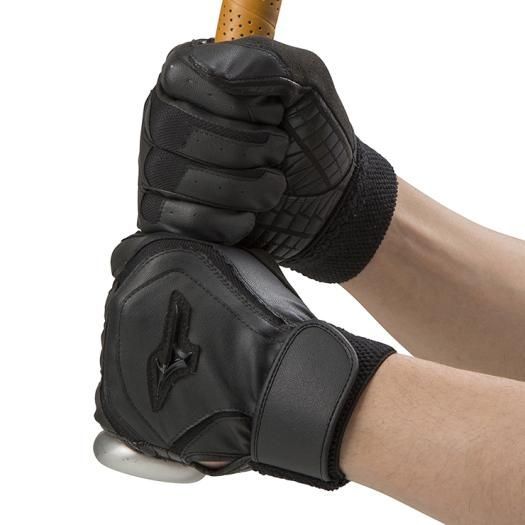 ミズノ(MIZUNO) バッティング手袋 両手用 品番:1EJEH15090 カラー:ブラック×ブラック(90) サイズ:S(22~23cm)、M(24~25cm)、L(26~27cm)、LL(28~29cm) 素材:掌部/人工皮革(シリコン加工)、甲部/合成皮革、ナイロン、ポリエステル 掌シリコン加工 機能・特徴 3Dカット 単独水洗い可 原産国:インドネシア製