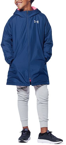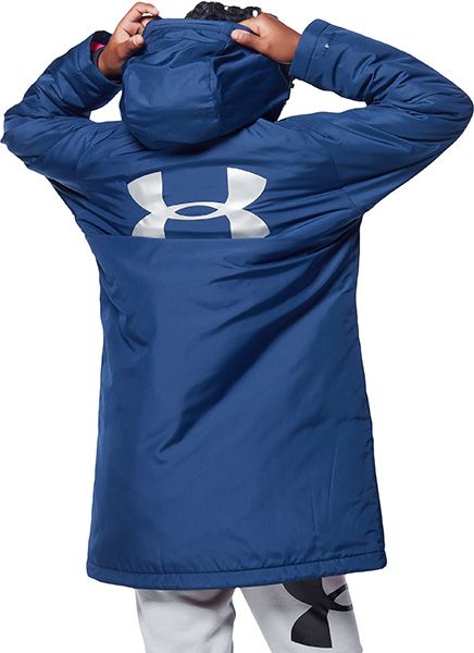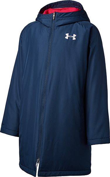 アンダーアーマー(UNDER ARMOUR) ジュニア ベンチコート UAインサレート 品番:1347322 カラー:Academy(409) サイズ:YXS(120)、YSM(130)、YMD(140)、YLG(150)、YXL(160) ジュニアサイズ(cm) YSM(130)/身長125-135、着丈72.5、身幅49.5 YMD(140)/身長135-145、着丈76、身幅52 YLG(150)/身長145-155、着丈80、身幅54.5 YXL(160)/身長155-165、着丈84、身幅57