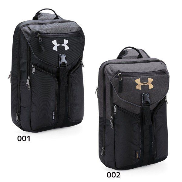 アンダーアーマー(UNDER ARMOUR) ボディバッグ コンペルスリング2.0 品番:1306059 カラー:001(BLK×BLK×SIL)、002(BFH×BLK×GDR) 素材:ポリエステル 機能・特徴 ・ボトルポケット付き。 ・ラップトップ収納可能。 ・サイズ(最小):W31cmxD13cmxH46cm(17L) ・サイズ(最大):W31cmxD22cmxH46cm(30L)