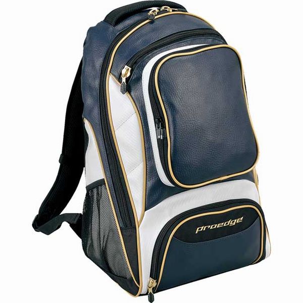 エスエスケイ(SSK) プロエッジ バックパック 品番:EBA1009 カラー:ネイビー×ゴールド(7038) 素材:合成皮革(PVC) サイズ:長さ33×高さ54×幅21cm(容量:約35L)、前ポケット:縦24.5×横19cm