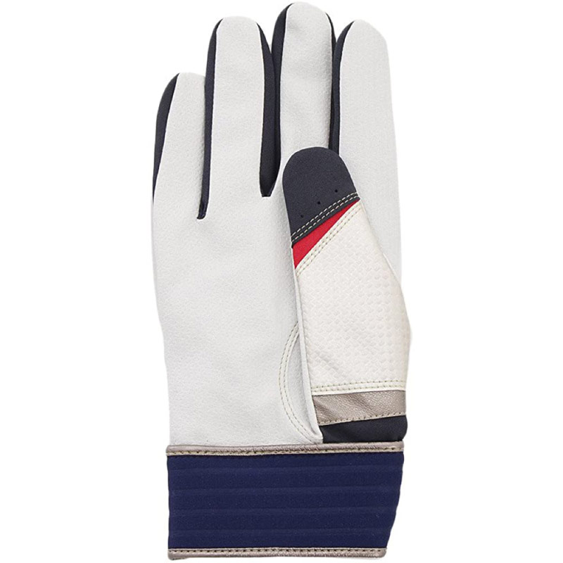 品番:1EJEA103 カラー:14(ホワイト×ネイビー×レッド) サイズ:S(22〜23cm)、M(24〜25cm)、L(26〜27cm) 素材 掌部:合成皮革 甲部:合成皮革、ポリエステル、ポリウレタン 詳細:単独水洗い可能、高校野球ルール対応モデル 原産国:ベトナム製