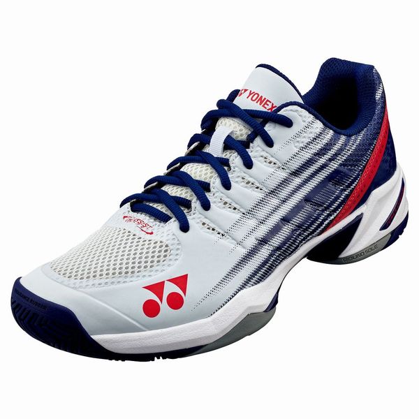 ヨネックス(YONEX) ソフトテニスシューズ パワークッションチームGC 品番:SHTTGC カラー:ホワイト/ネイビー(100) サイズ:22.0~29.0cm 素材 アッパー:合成繊維+合成樹脂 ミッドソール:合成樹脂 アウトソール:ゴム底 機能・特徴 ・3E設計 ・クレー・オムニコート用 原産国:ベトナム製