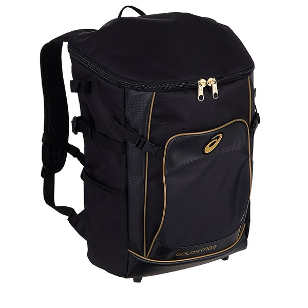 アシックス(asics) ゴールドステージ バックパック 品番:3123A528 カラー:ブラック(001) 素材:ポリエステル・合成皮革 サイズ:W35×H52×D18cm 前ポケットサイズ:W22×H24cm 容量:約32L 機能・特徴 バット収納ポケット 生産国:ベトナム