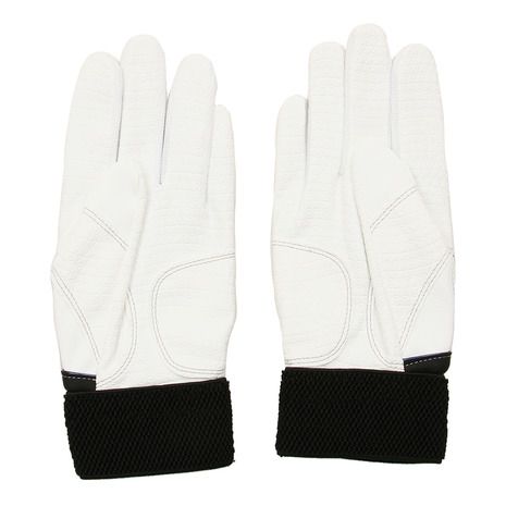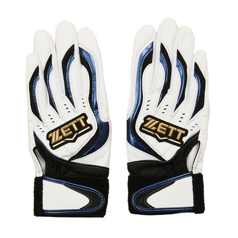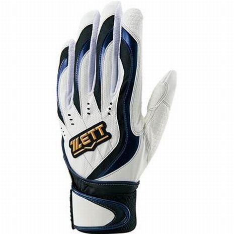 ゼット(ZETT) バッティンググローブ 両手用 インパクトゼット 品番:BG997 カラー:ホワイト/ネイビー(1129) サイズ:S(22-23cm)、M(24-25cm)、L(26-27cm) 素材 甲側:合成皮革 掌側:合成皮革(エンボス加工) 当て革:合成皮革(エンボス加工) 機能:ウォッシャブル