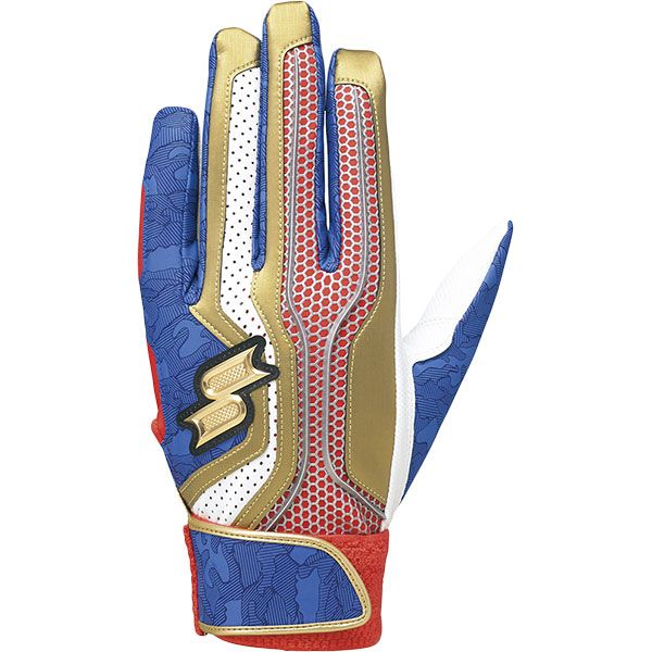 エスエスケイ(SSK) バッティンググローブ 両手用 品番:EBG5002WF カラー:ブルーカモ×ゴールド(60CG) サイズ:S(22-23)、M(24-25)、L(26-27) 素材:合成皮革×合成繊維 機能・特徴 水洗い可能 デュアルグリップ デジグローブ