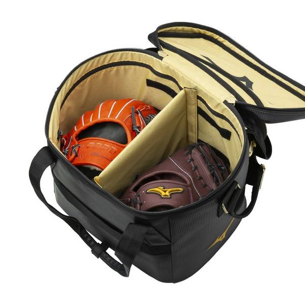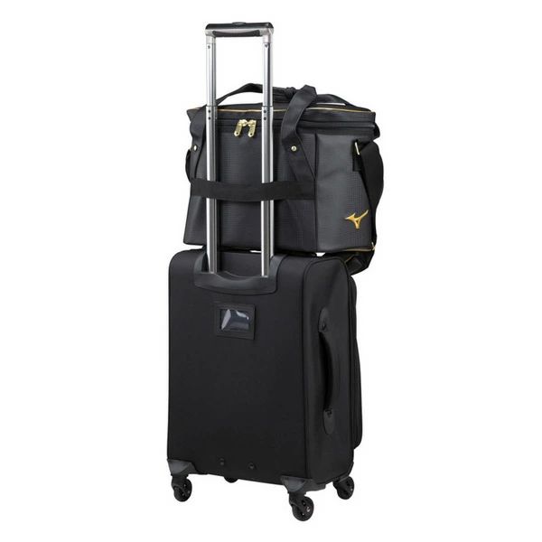 ミズノ(MIZUNO) ミズノプロ MPボールケース兼グラブケース 品番:1FJB100209 カラー:ブラック(09) サイズ:L35×W26×H30cm 容量:約28L 素材:合成皮革(PVC) 重量:約2210g 機能・特徴 キャリーケースに取り付け可能 肩掛けしたままボール出しが出来る設計 中国製