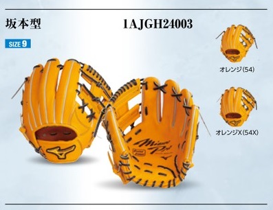 品番:1AJGH24003 カラー:54(オレンジ) 素材:ジェネラルキップレザー(天然皮革:牛革) サイズ:9 ポジション:内野手用(坂本型) 左右:右投用 付属品:BSSショップ限定袋 原産国:日本製