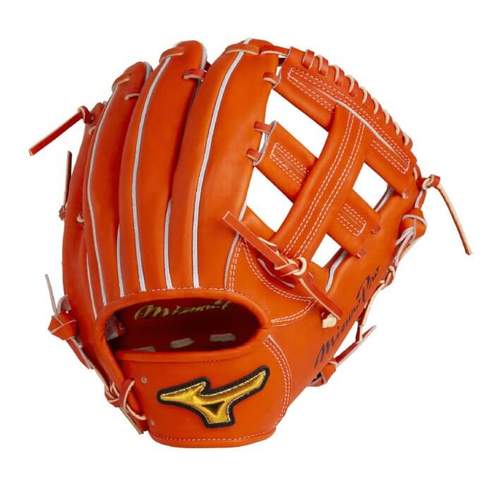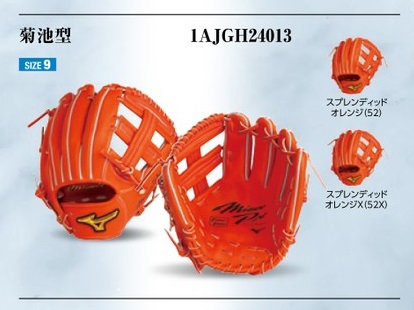 品番:1AJGH24013 カラー:52(スプレンディッドオレンジ) 素材:プレキシーキップレザー(天然皮革:牛革) サイズ:9 ポジション:内野手用(菊池型) 左右:右投用 付属品:BSSショップ限定袋 原産国:日本製