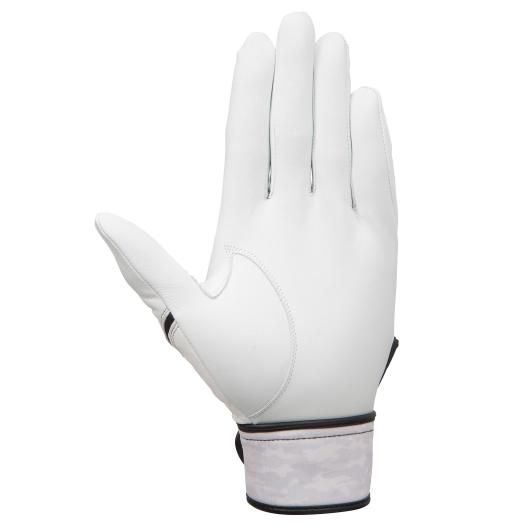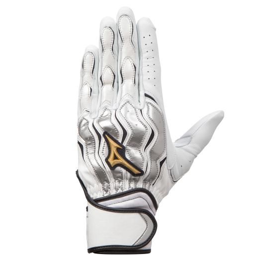 ミズノ(MIZUNO) ミズノプロ モーションアークライン バッティング手袋(両手用) 品番:1EJEA210 カラー:01:ホワイト×ブラック×シルバー サイズ:22〜27cm 素材 掌部:羊革 甲部:合成皮革、羊革、ナイロン、ポリエステル、ポリウレタン 機能・特徴 モーションアークライン スムースモーションフィンガー ソフト&ライトシープレザー サムディープカット 圧縮クロロプレンベルト採用 原産国:インドネシア製