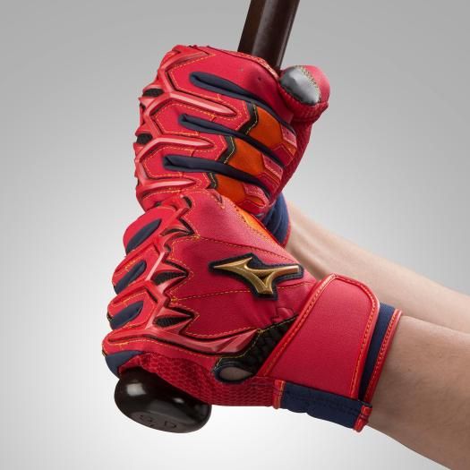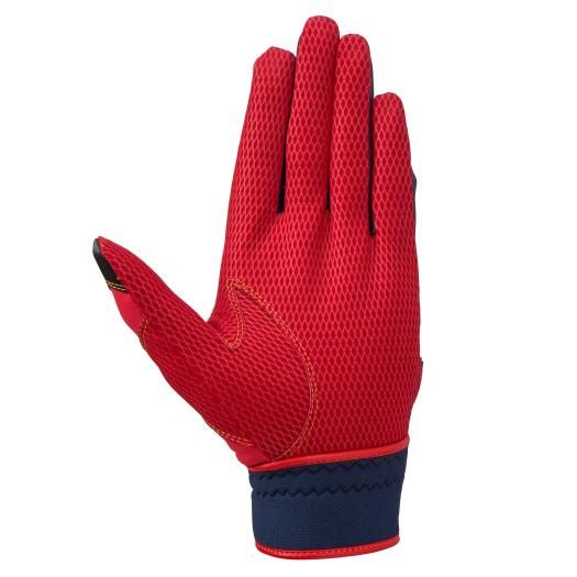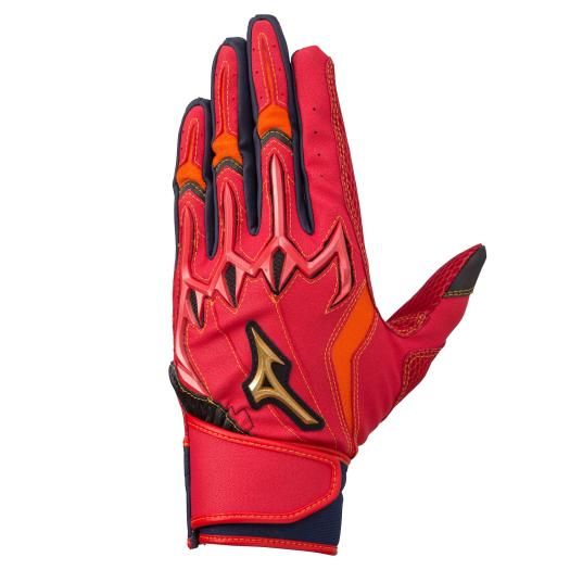ミズノ(MIZUNO) ミズノプロ シリコンパワーアークLI バッティング手袋(両手用) 品番:1EJEA07961 カラー:61:レッド×ネイビー×オレンジ サイズ:23〜27cm 素材 掌部:羊革 甲部:合成皮革、ポリエステル、ナイロン、ポリウレタン 機能・特徴 パワーアークライン ダイヤエンボスシープレザー 圧縮クロロプレンベルト採用 指先独自縫製 原産国:ベトナム製、フィリピン製