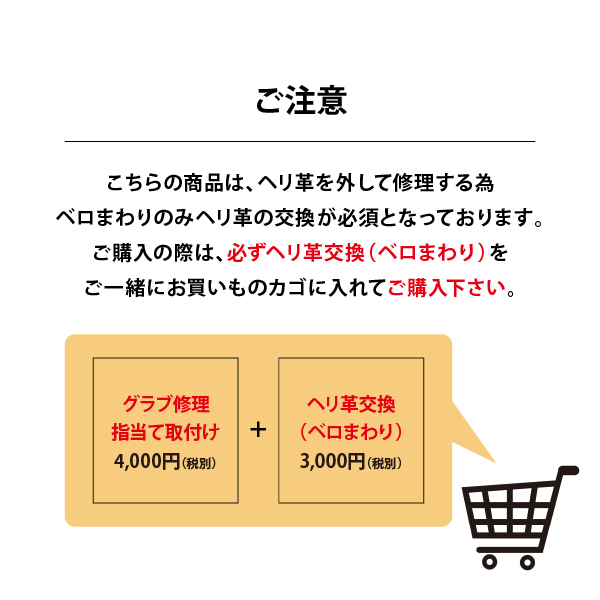 ※ヘリ革交換(“全部”または”ベロまわり”どちらか)も一緒に買い物かごに入れてください。