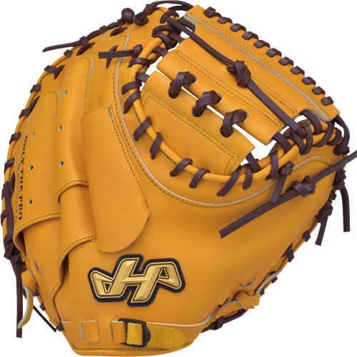 ハタケヤマ(HATAKEYAMA) 硬式野球 キャッチャーミット K SERIESモデル 品番:K-M8JY カラー:Jイエロー 素材:表革:スペシャルジャパンハイド、裏革:和牛革ブラック モデル:M8型(伊藤モデル) ポジション:捕手用 左右・右投用 機能・特徴 ロング指カバータイプ シェラームーブ ピンキーパターン 原産国:日本