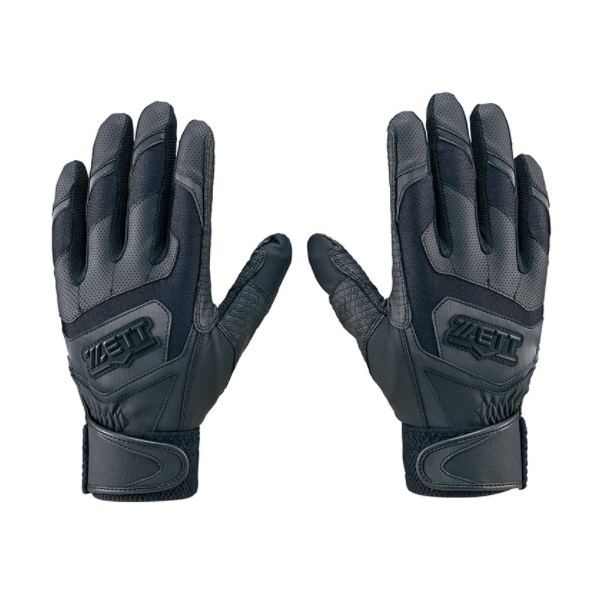 ゼット(ZETT) 野球 バッティンググラブ(両手用) 品番:BG919HS カラー:(1900)ブラック サイズ:S(22~23cm)、M(24~25cm)、L(26~27cm) 素材:甲側/合成皮革×掌側/合成皮革(エンボス加工)+当て革/合成皮革(エンボス加工) 機能:ウォッシャブル 高校野球対応 原産国:ベトナム