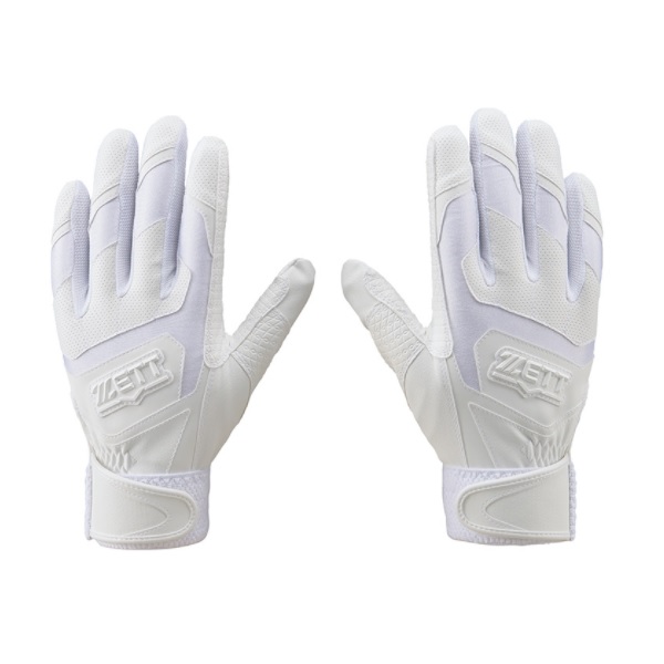 ゼット(ZETT) 野球 バッティンググラブ(両手用) 品番:BG919HS カラー:(1100)ホワイト サイズ:S(22~23cm)、M(24~25cm)、L(26~27cm) 素材:甲側/合成皮革×掌側/合成皮革(エンボス加工)+当て革/合成皮革(エンボス加工) 機能:ウォッシャブル 高校野球対応 原産国:ベトナム