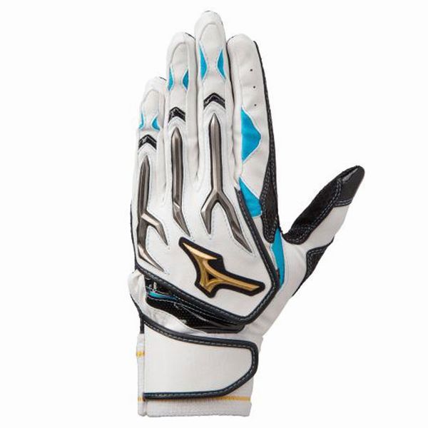ミズノ(MIZUNO) ミズノプロ シリコンパワーアーク W バッティング手袋(両手用) 品番:1EJEA07801 カラー:01:ホワイト×ブラック×スカイブルー サイズ:23〜27cm 素材 掌部:羊革(型押し) 甲部:合成皮革、ポリエステル、ナイロン、ポリウレタン 機能・特徴 パワーアークライン パワーアーク専用Wベルト構造 デュアルテンションベルト 指先独自縫製 インデックス独自補強 ダイヤエンボスシープレザー 原産国:ベトナム製、フィリピン製