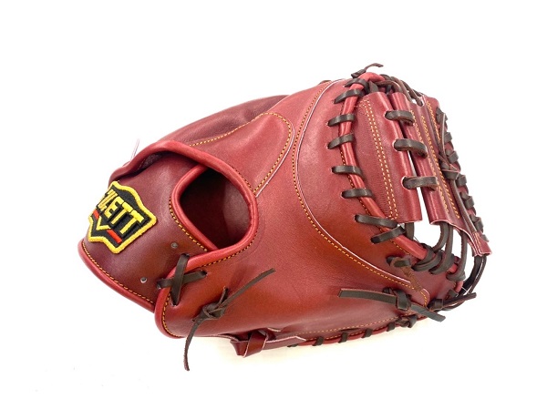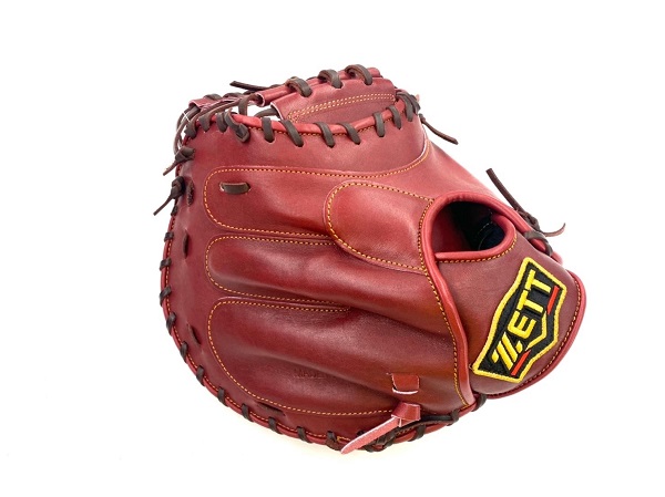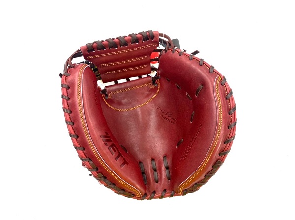 品番:BPROCM820 カラー:4000(ボルドーブラウン) 素材:天然皮革製(表)国産牛レザー、(平裏)国産牛レザー ポジション:捕手用 左右:右投用 詳細:縦型、ポケット浅め 付属品:専用グラブ袋付き 原産国:日本製