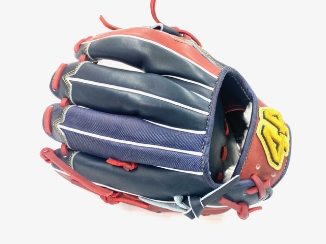 44(フォーティーフォー) 硬式軟式ソフトボール兼用グローブ 内野手用 品番:44-CR2 カラー:ネイビー×エンジ×デニム 素材:USステアレザー 左右:右投用 ポジション:内野手用 サイズ:11.5 特徴 グラブデザイン ポケットがしっかり設計できる型紙コンセプト。日米では捕球スタイルが異なるので、日本向けに開発された型を採用しています。 鉄板ポケットテクノロジー しっかりとしたポケットをサポートするために、硬めの芯を使用しています。指の動きと連動してグラブの操作性が向上! 指先補強有り