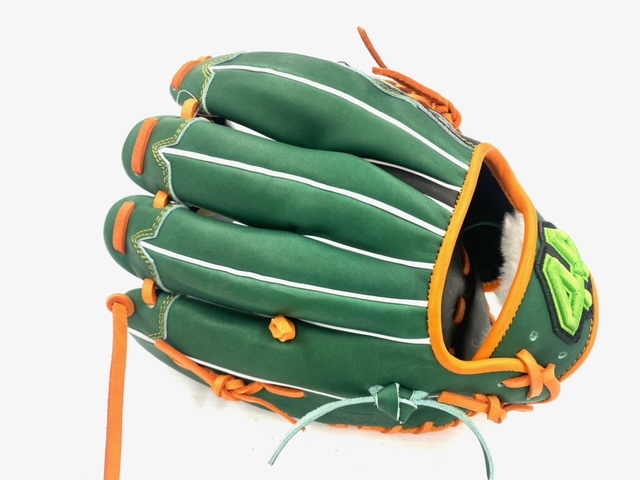 44(フォーティーフォー) 硬式軟式ソフトボール兼用グローブ 内野手用 品番:44-CR12 カラー:グリーン×ブラック 素材:USステアレザー 左右:右投用 ポジション:内野手用 サイズ:11.5 特徴 グラブデザイン ポケットがしっかり設計できる型紙コンセプト。日米では捕球スタイルが異なるので、日本向けに開発された型を採用しています。 鉄板ポケットテクノロジー しっかりとしたポケットをサポートするために、硬めの芯を使用しています。指の動きと連動してグラブの操作性が向上! 指先補強有り