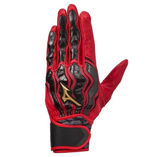 ミズノ(MIZUNO) ミズノプロ モーションアークSF バッティング手袋(両手用) 品番:1EJEA07762 カラー:62:レッド×レッド×ブラック サイズ:23〜27cm 素材 掌部:羊革 甲部:合成皮革、羊革、ナイロン、ポリエステル、ポリウレタン 機能・特徴 モーションアークライン スムースモーションフィンガー ソフト&ライトシープレザー サムディープカット 圧縮クロロプレンベルト採用 原産国:インドネシア製