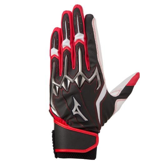 ミズノ(MIZUNO) バッティング手袋(両手用) シリコンパワーアークLI レプリカ 品番:1EJEA08709 カラー:09:ブラック×レッド×グレー サイズ:23〜26cm 素材 掌部:合成皮革 甲部:合成皮革、ポリエステル、ナイロン、ポリウレタン 機能・特徴 パワーアークライン ワイドロングベルト採用 ダイヤエンボス合成皮革採用 単独水洗い可能モデル 原産国:ベトナム製、フィリピン製
