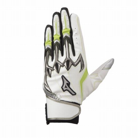 ミズノ(MIZUNO) バッティング手袋(両手用) シリコンパワーアークLI レプリカ 品番:1EJEA08701 カラー:01:ホワイト×ブラック×ライム サイズ:23〜26cm 素材 掌部:合成皮革 甲部:合成皮革、ポリエステル、ナイロン、ポリウレタン 機能・特徴 パワーアークライン ワイドロングベルト採用 ダイヤエンボス合成皮革採用 単独水洗い可能モデル 原産国:ベトナム製、フィリピン製