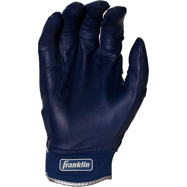 フランクリン(Franklin) バッティング手袋 両手用 パワーストラップ クロム 品番:20492 カラー:ネイビー(NV) サイズ:S(23-24cm)、M(24-25cm)、L(25-26cm) 素材:羊革、合成皮革 機能・特徴 パワーストラップテクノロジー 手首のサポート、優れたフィット感、打席での着け直しも必要がない着け心地。 シープスキンレザー 耐久性・柔らかさ・しなやかさを追求。専門家チームが厳選したプレミアム品質の羊革。 シームレスパーム グローブの快適性・耐久性を最大にするために手のひらは継ぎ目のない一枚構造。 原産国:ベトナム