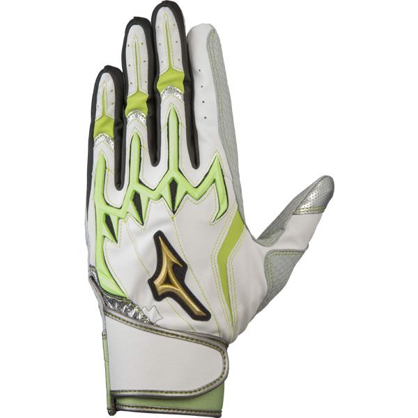 ミズノ(MIZUNO) ミズノプロ バッティング手袋(両手用) シリコンパワーアーク LI 品番:1EJEA80601 カラー:01:ホワイト×ライム×ホワイト サイズ:23〜26cm 素材 掌部:羊革(型押し) 甲部:合成皮革、ポリエステル、ナイロン、ポリウレタン 機能・特徴 圧縮ウレタンベルト パワーアークライン ダイヤエンボスシープレザー デュアルテンションベルト 原産国:フィリピン製