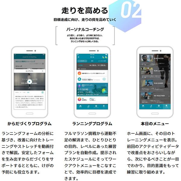 走りを分析し、ランニングフォームの修正や最適なトレーニング方法をアドバイスや情報としてフィードバックしてくれます。
