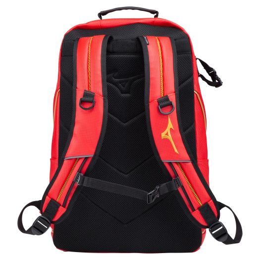ミズノプロシリーズにもバックパックが堂々の新登場。新機能スプリットストラップ搭載、充実の小物ポケット。ミズノ(MIZUNO) ミズノプロ バックパック品番:1FJD1000カラー:レッド(62)サイズ:L34×W21×H54cm容量:約40L素材:合成皮革(PVC)機能・特徴・サイドのフックで防具、ヘルメットなど取付可能・両サイドポケット付きファブリーズも入るサイズ・選手の安全に配慮した再帰反射パイピング・底部も合成皮革で水が染み込みにくい設計原産国:中国製