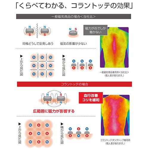 ネックループ部全体がコラントッテ独自のN極S極交互配列。 磁力が広範囲に影響し血行を改善、コリを緩和します。 ループは本革のような格調ある仕上げで、しかもポリエステルで手洗いも可能。