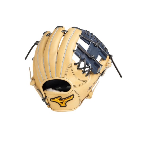 品番:1AJGR24043 カラー:8029(ブロンド×Dブルー) 素材:ギンジョウエリートR(天然皮革:牛革) サイズ:8 ポジション:内野手用(グレゴリウス型) 左右:右投用 付属品:ミズノプロ限定専用袋付 原産国:中国