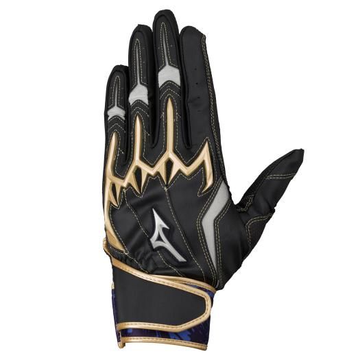 ミズノ(MIZUNO) バッティング手袋 両手用 シリコンパワーアークLI レプリカ 品番:1EJEA09309 カラー:09:ブラック×グレー×ゴールド(掌部カラー:ブラック) サイズ:S(22~23cm)、M(24~25cm)、L(26~27cm) 素材 掌部:合成皮革 甲部:合成皮革、ポリエステル、ナイロン、ポリウレタン 機能・特徴 パワーアークライン(特許:3919433) グリップを握る際に最も重要な3本指にシリコーン樹脂パーツを配置し、握る際にテンションをかけることで、握り返す力を生み出します。 さらにそのパーツを連結させることで、単独では発揮する力の弱い薬指・小指をサポートし、スイング時のパワーロスを最小限に抑えインパクトへ繋げます。