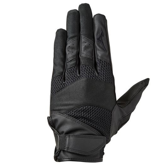 ミズノ(MIZUNO) ミズノプロ 守備手袋 左手用 品番:1EJED20090 カラー:90:ブラック×ブラック サイズ:S(22~23cm)、M(24~25cm)、L(26~27cm) 素材 掌部:合成皮革 甲部:合成皮革、ポリエステル、ポリウレタン 機能・特徴 単独水払い可 高校野球ルール対応モデル