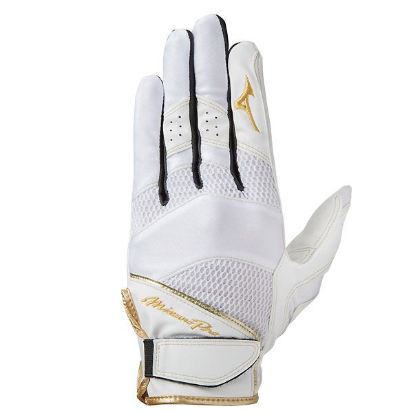 ミズノ(MIZUNO) ミズノプロ 守備手袋 左手用 品番:1EJED21001 カラー:10:ホワイト×ホワイト サイズ:S(22~23cm)、M(24~25cm)、L(26~27cm) 素材 掌部:合成皮革 甲部:合成皮革/ポリエステル/ポリウレタン 機能・特徴 手首部ショート設計 グラブの自在な操作をサポートする為、手首部ショート設計を採用。 自然な手の動きに近くなることで、球際のグラブさばきをすばやく、かつスムーズなものにします。