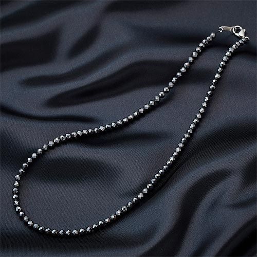 従来の「ネックレスLUCE」よりも磁力の高い100mT(1000G)のフェライト永久磁石を使用しております。 磁石を100〜120個使用し、首回り全体にN極S極交互配列で配置しました。 磁石には48面体鏡面加工を施し、研磨しているので美しい輝きを保ちます。 従来の「ネックレスLUCE」よりも重量を約6g軽量化しており、着け心地を改良しました。 留め具フックは従来の「ネックレスLUCE」よりも2mm大きくし、装着しやすくなりました。