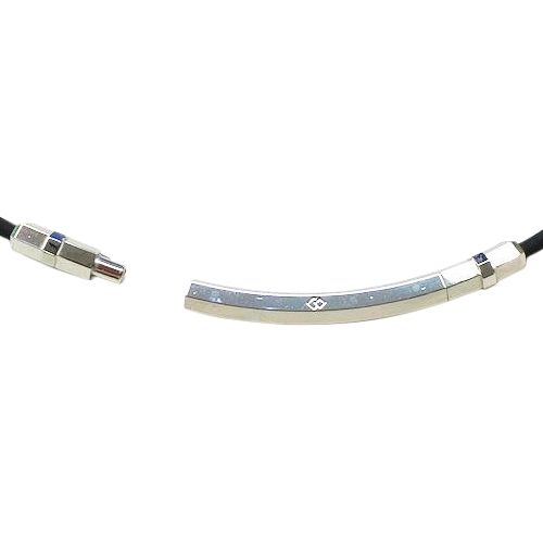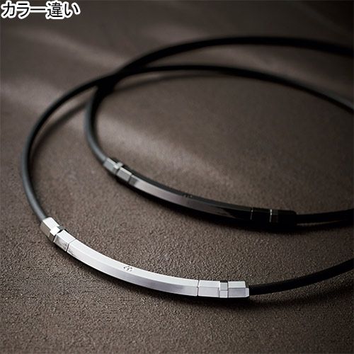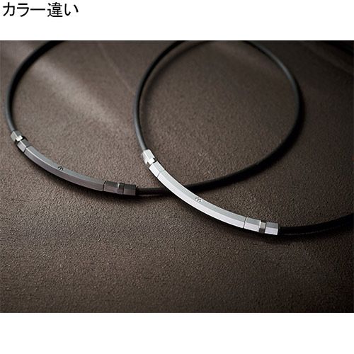 幅3mmのスリムループで軽い着け心地でありながら、既存のTAOネックレス同等の磁力(55mT)を実現。 六角に面取りしたアーク形状のトップジョイントがループと一体化したデザイン。