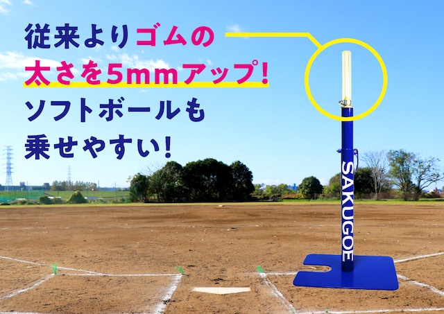 強打者を育てるためのバッティングティー・自宅トレーニングにも! サクゴエは、小学校をはじめ中学生・高校生・大学生・社会人・プロ野球の選手など 多くの野球人バッティングトレーニング機器としてご活用いただいています。 新登場!ソフトボールが乗せやすい! ゴム部のサイズが「SAKUGOE」よりも太く、 ソフトボールが簡単に乗る形状『新型サクゴエ PUT式(SOFT)』が新登場!