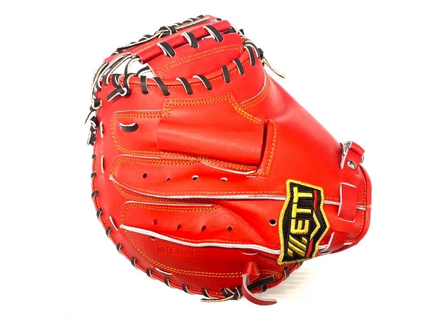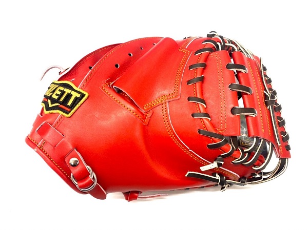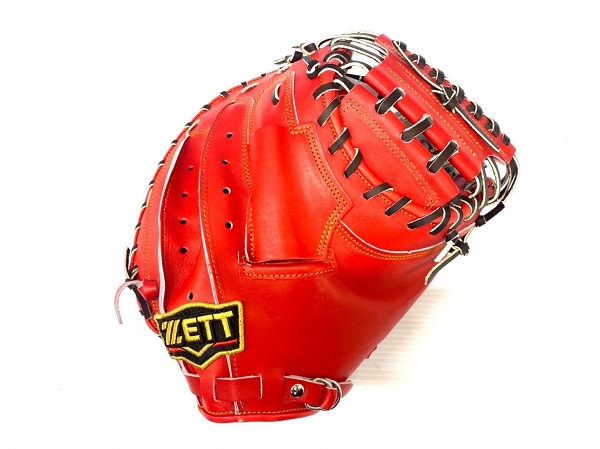 ゼット(ZETT)プロステイタス 硬式キャッチャーミット 品番:BPROCM920 カラー:5837(Dオレンジ×ブラック) 素材:天然皮革製(表)国産牛レザー、(平裏)国産牛レザー ポジション:捕手用 左右:右投用 詳細:縦型、ポケット深め 付属品:専用グラブ袋付き 原産国:日本製