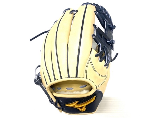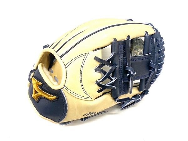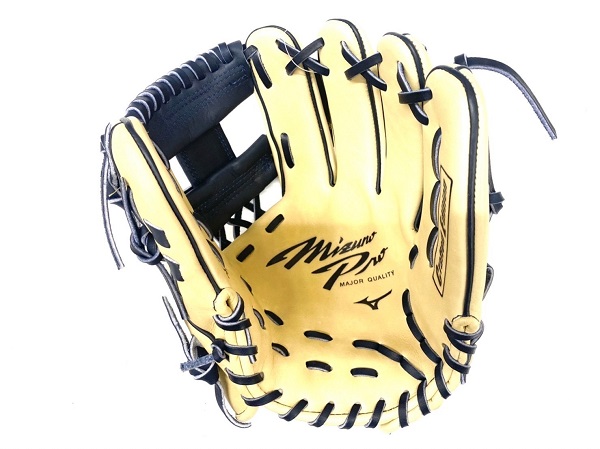 ミズノ(MIZUNO)ミズノプロ 軟式グラブ CRAFTED EDITION 限定 シモンズ型 品番:1AJGR98403 カラー:8029(ブロンド×Dブルー) 素材:ギンジョーエリートR(天然皮革:牛革) サイズ:9 ポジション:内野手用(シモンズモデル) 左右:右投用 付属品:専用グラブ袋付 原産国:中国