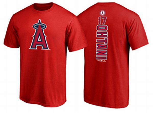 ロサンゼルス・エンジェルスのロゴを胸に、大谷翔平選手の名前と背番号を背中にプリントしたTシャツ