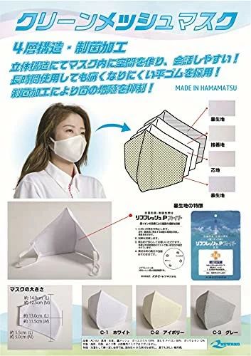 レワード(Reward) クリーンメッシュマスク 品番:AC502 カラー:ホワイト サイズ:Mサイズ:12.5×11.5cm×5cm、Lサイズ:14×13cm×5.5cm 素材:ポリエステル100% この商品は医療用マスクではございません。 4層構造、制菌加工!クリーンメッシュマスク!立体構造にてマスク内に空間を作り会話がしやすくなっております。 長時間使用しても痛くなりにくい平ゴムを採用。 裏面生地は制菌加工により菌の繁殖を抑制する効果がございます。 通気性のあるポリエステル素材を使用した軽量立体構造。 全て国内生産にて生産しております。 耳紐はゴム紐を採用。 繰り返し使えますのでちょっとしたお買い物の時などにも持っていると便利です。