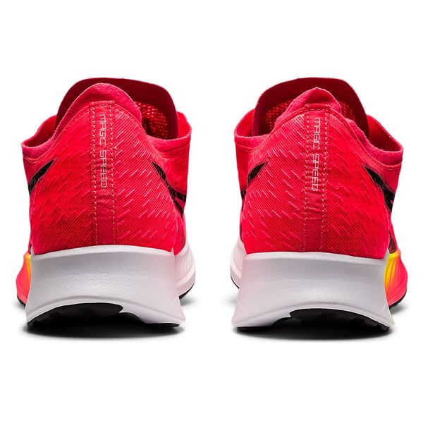 アシックス(ASICS) ランニングシューズ マジックスピード 品番:1011B026 カラー:パフォーマンスレッド×ブラック(650) サイズ:24.5~29.0cm 素材 アッパー:合成繊維・合成樹脂 アウターソール:ゴム底 インナーソール:合成樹脂(FLYTEFOAM)固定式 ラスト:STANDARD 重量:約230g(片足27.0cm) 機能・特徴 ・優れた反発性を発揮する軽量フォーム材FLYTEFOAM BLASTをミッドソール全面に採用 ・弓状のガイドソールテクノロジーが優れた走行効率性を発揮 ・前足部に搭載されたカーボンプレートが剛性を高め、スムーズな蹴り出しをサポート ・エンジニアードモノフィラメントメッシュが通気性を向上 ・グリップ力に考慮した意匠を採用したAHARアウターソールラバーが耐久性を向上 生産国:ベトナム