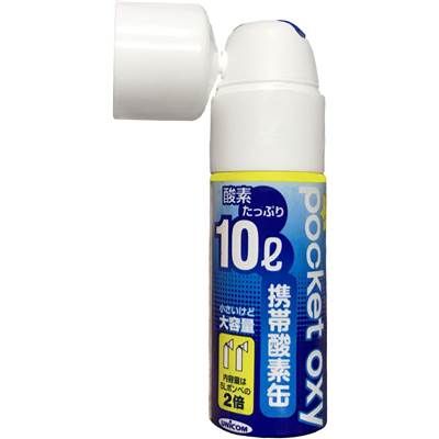 ユニコム(UNICOM) 携帯酸素 ポケットオキシ 品番:POX04 サイズ:直径4cm、高さ15cm 内容:酸素99% 充填量:10L 内容積:66CC 用途:登山、スポーツ、勉強、通勤 原産国:韓国